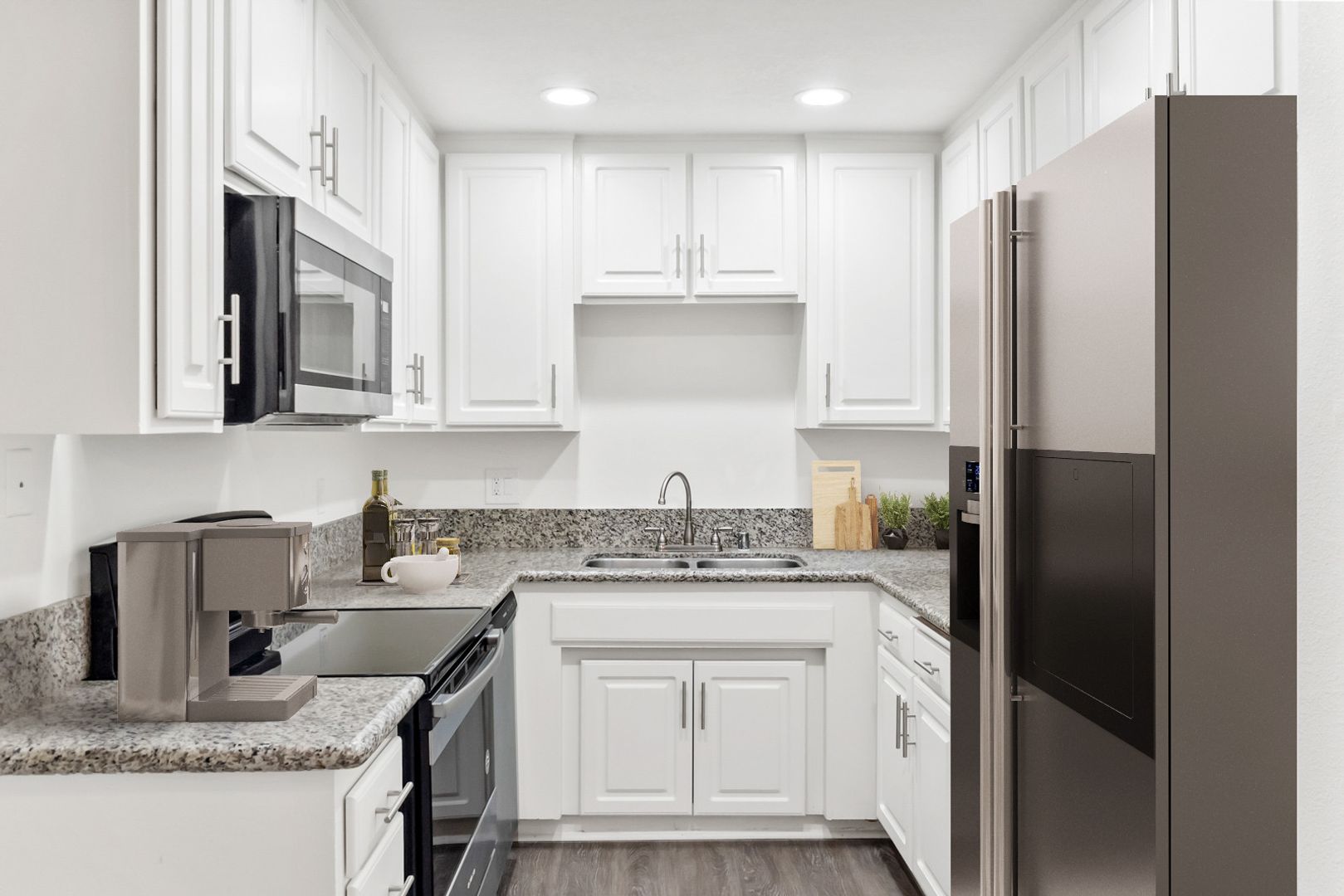 Fully upgraded 2-bedroom, 2-bath apartment featuring energy-efficient LED lighting, brand-new plank flooring, and plush new carpet in the bedrooms. The modern kitchen is equipped with upgraded stainless steel appliances, including a dishwasher, stove, and over-the-range microwave. Additional highlights include mirrored closet doors, a newly renovated tub and shower, and stylish shaker-style cabinetry throughout.